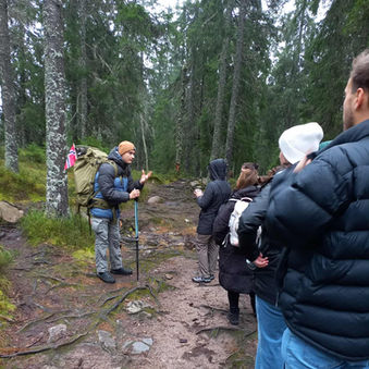 Guided forest walk with stories of Norwegian nature, culture, and history